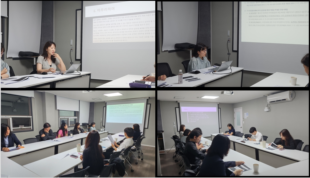 [2025-09-27] [주제1] "OTT 애니메이션 <케데헌> 성공 사례로 본 K-콘텐츠 저작권의 현황과 과제 –음악저작권을 중심으로-" (발제자: 김지현 스타쉽엔터테인먼트 실장); [주제2] “한국 법원 판결에서의 외국 법제·판례의 참고 및 인용 가능성 고찰”(발제자: 김연수 숙명여자대학교 법학부 초빙교수/법학박사)